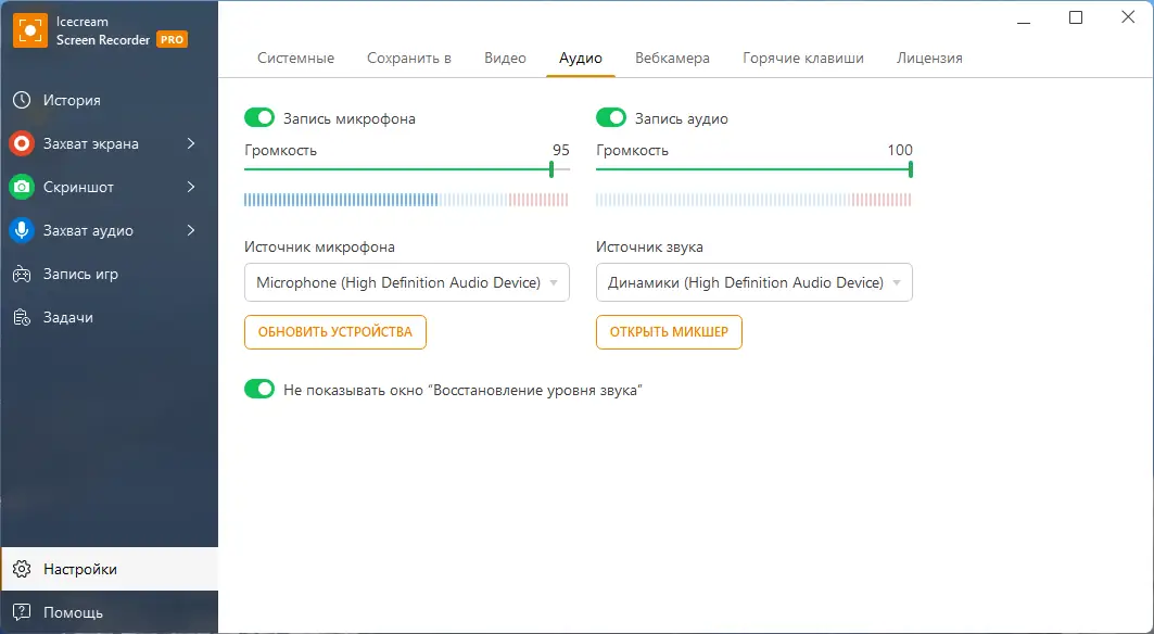Icecream Screen Recorder предназначен для эффективного и быстрого захвата происходящего на мониторе. Пользователь может выбрать конкретную область экрана или зафиксировать полностью всё рабочее пространство. Утилита поддерживает запись в реальном времени с сохранением аудиопотока: системного звука, голоса через микрофон или обоих источников одновременно. Это делает её незаменимой при создании обучающих видео, презентаций, демонстраций программ или игр. Поддержка высокого разрешения и плавного воспроизведения гарантирует качество даже при длительных сессиях.
