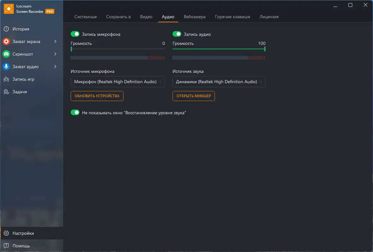 Работа с Icecream Screen Recorder