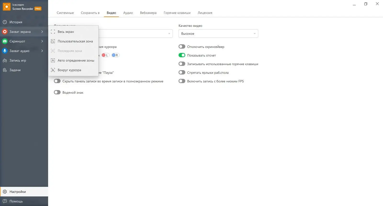 Работа с Icecream Screen Recorder