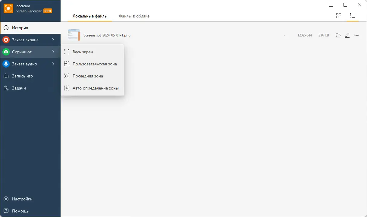 Icecream Screen Recorder — это многофункциональное приложение, предназначенное для захвата экрана с возможностью дополнительной обработки. Программа позволяет записывать всё, что происходит на мониторе: демонстрации программ, обучающие видео, вебинары, стримы и игровые сессии. Благодаря интуитивному интерфейсу и широкому набору инструментов, она подойдёт как новичкам, так и опытным пользователям. Поддержка нескольких режимов захвата делает процесс максимально гибким.