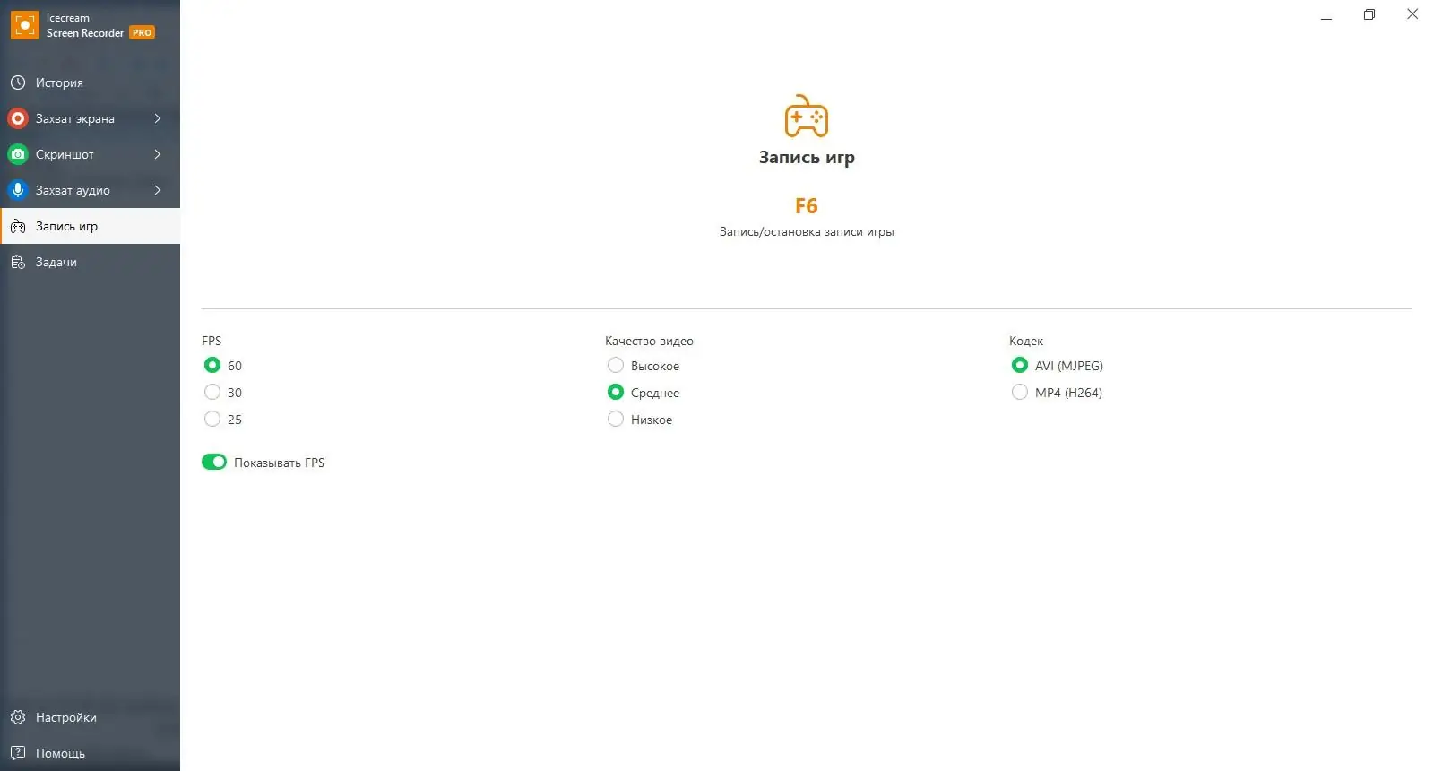 - Запись видео с экрана в высоком качестве с настройкой частоты кадров и разрешения