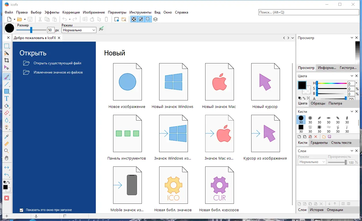 IcoFX — это мощный инструмент для создания, редактирования и конвертации иконок и курсоров с поддержкой прозрачности и анимации. Программа работает с множеством графических форматов и позволяет извлекать иконки из исполняемых файлов, а также создавать логотипы для сайтов и блогов. Подходит как для новичков, так и для профессиональных дизайнеров, благодаря интуитивному интерфейсу и широкому набору функций.