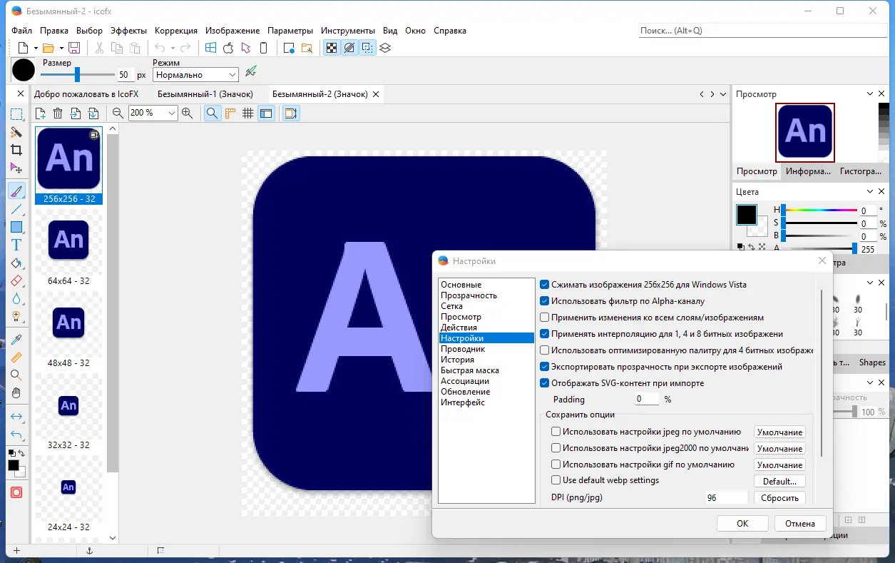 Работа с IcoFX