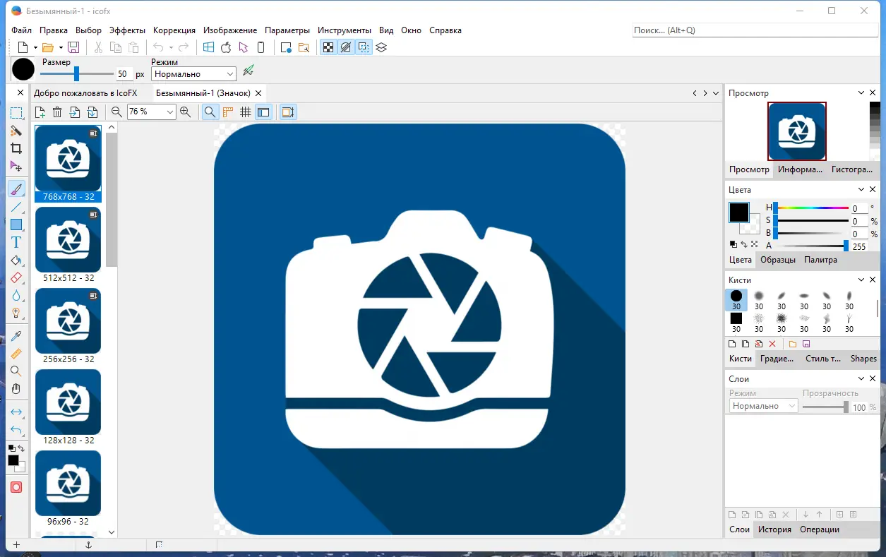 Использование IcoFX не требует глубоких знаний в области графики. После запуска можно создать новый проект, выбрать размер и цветовую глубину иконки или загрузить изображение из файла. Доступны инструменты выделения, заливки, лассо, кисть и текст. Все изменения применяются на слоях, что позволяет легко отменять действия и корректировать отдельные элементы. Для массового преобразования изображений используется пакетный режим, в котором можно одновременно конвертировать десятки файлов. Также доступна функция извлечения иконок из .exe, .dll и других системных файлов. После завершения работы проект можно сохранить в нужном формате или экспортировать как часть ресурсов.