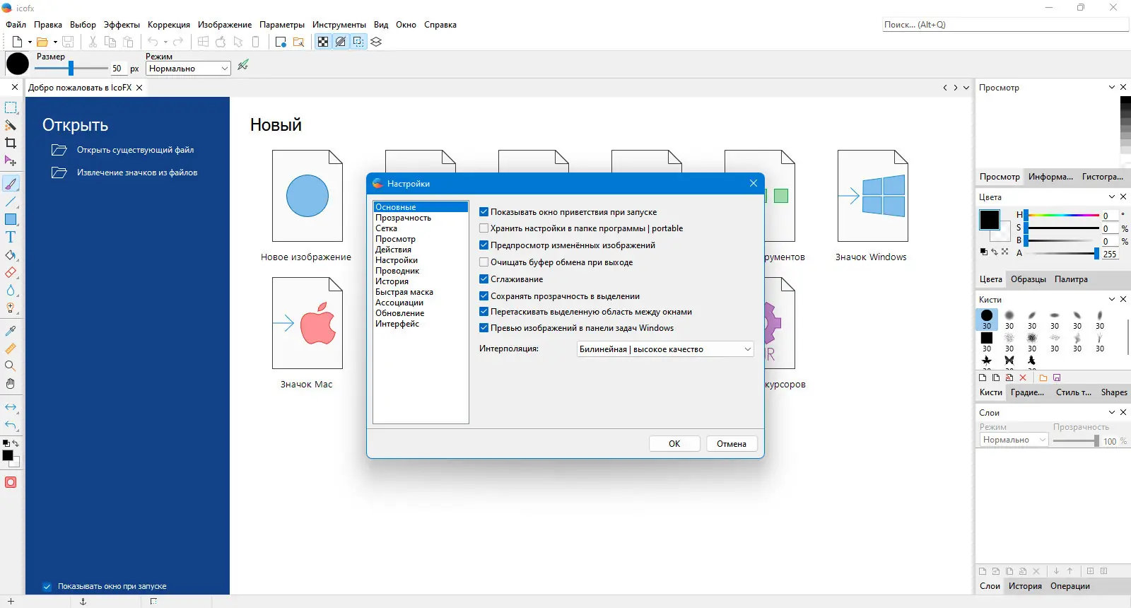 - Создание и редактирование иконок и курсоров с поддержкой альфа-канала