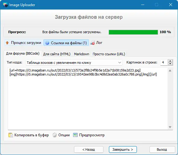 Image Uploader сочетает в себе широкие возможности и простоту использования, что делает его ценным инструментом для повседневной работы с изображениями. Программа поддерживает многопоточную загрузку, что существенно ускоряет передачу файлов на сервер. Также реализована поддержка нескольких учётных записей на одном сервисе, что удобно при работе с разными проектами. Режим перезаливки позволяет перемещать изображения из одного источника в другой с сохранением разметки, что особенно полезно при копировании контента между платформами. Портативная версия не требует установки и может запускаться с флешки, сохраняя все настройки.