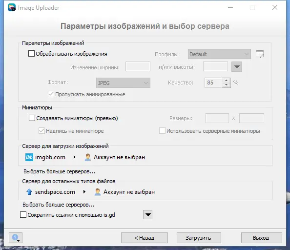 Image Uploader — бесплатная программа с открытым исходным кодом для Windows, позволяющая быстро загружать изображения, скриншоты и кадры из видео на десятки популярных хостингов. Поддерживает автоматическое создание миниатюр, редактирование изображений и генерацию ссылок в формате HTML и BBCode для публикации на форумах, в блогах и соцсетях.