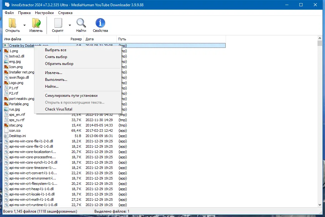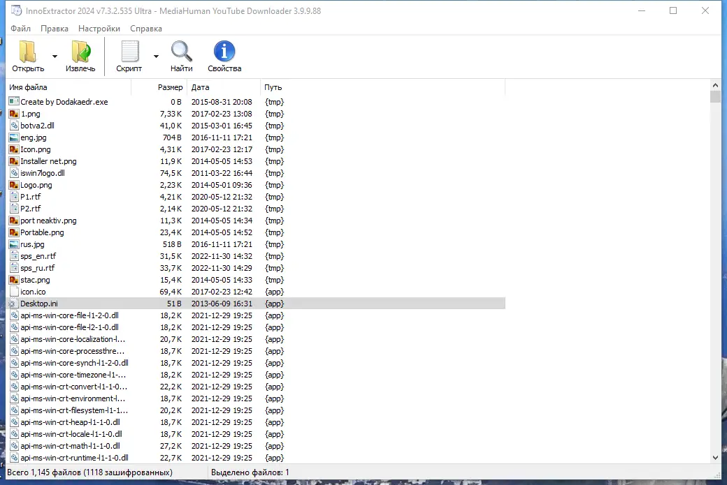 Работа с InnoExtractor