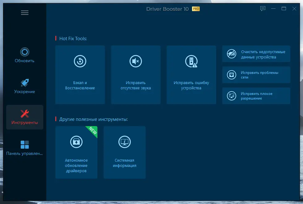 - Автоматическое определение устаревших, отсутствующих и повреждённых драйверов
