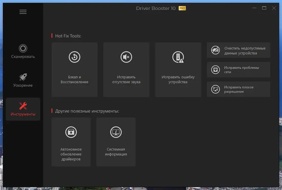 - Автоматическое сканирование системы на наличие устаревших, отсутствующих или повреждённых драйверов.