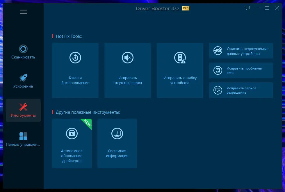 - Использование оптимизированного ядра, ускоряющего процесс поиска нужных драйверов на 20%.