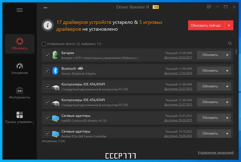 - Автоматическое определение устаревших драйверов без вмешательства пользователя.