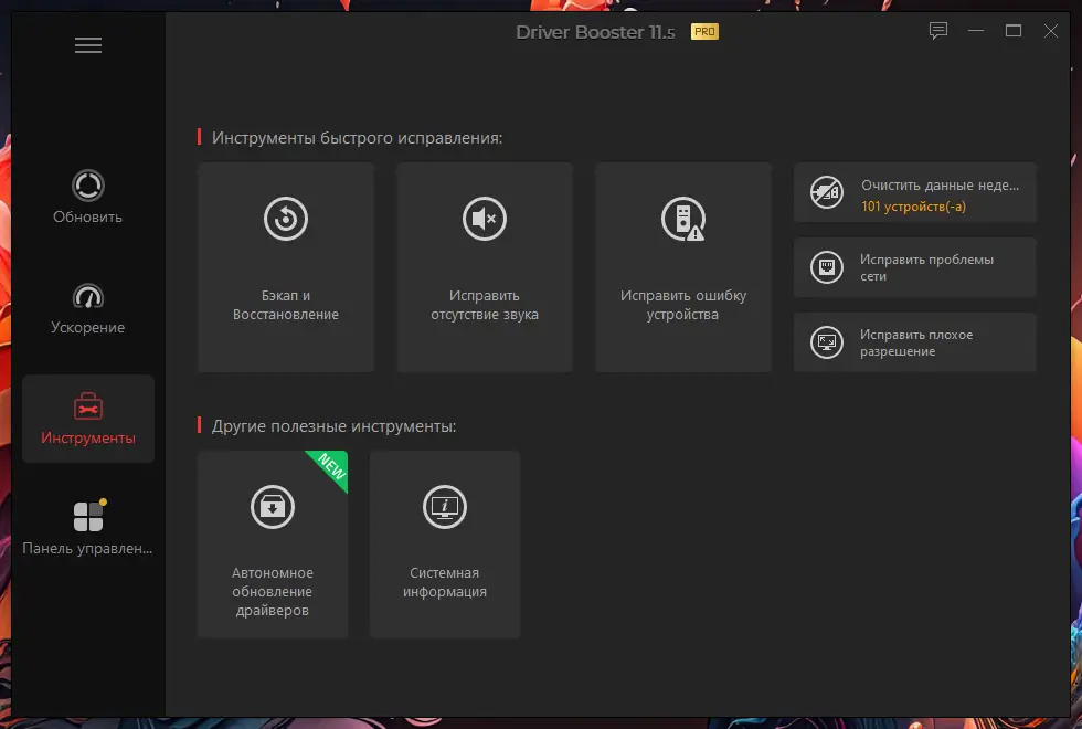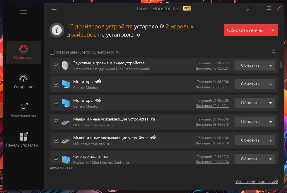 - Автоматическое сканирование системы на наличие устаревших драйверов.