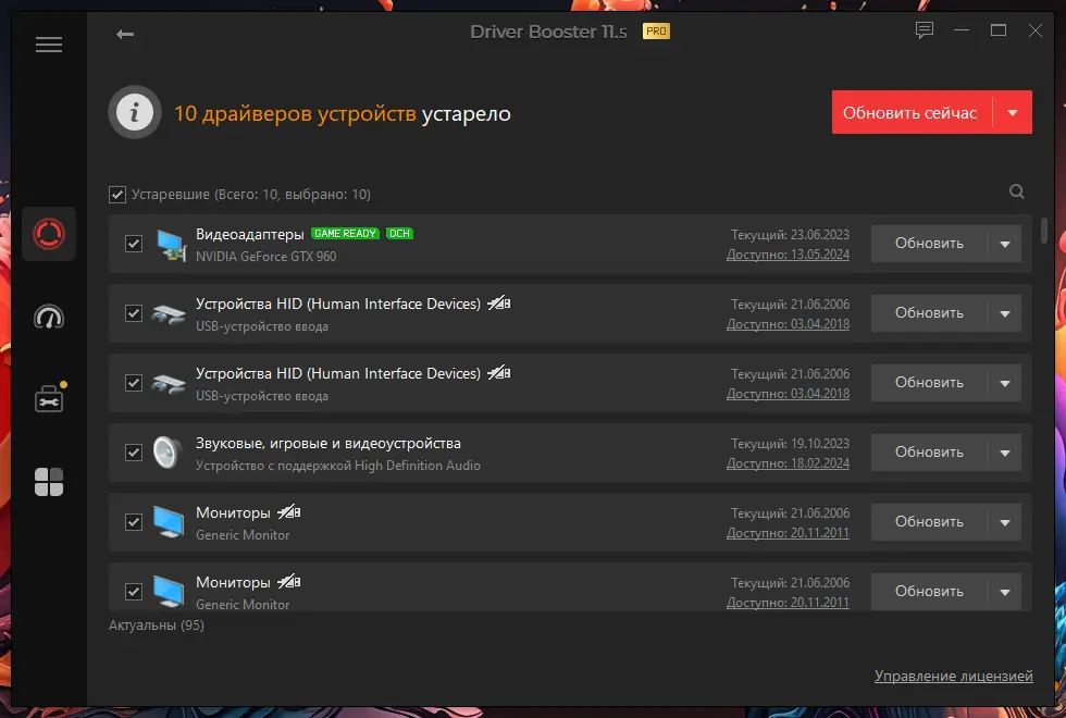 - Автоматическое сканирование системы на наличие устаревших драйверов.