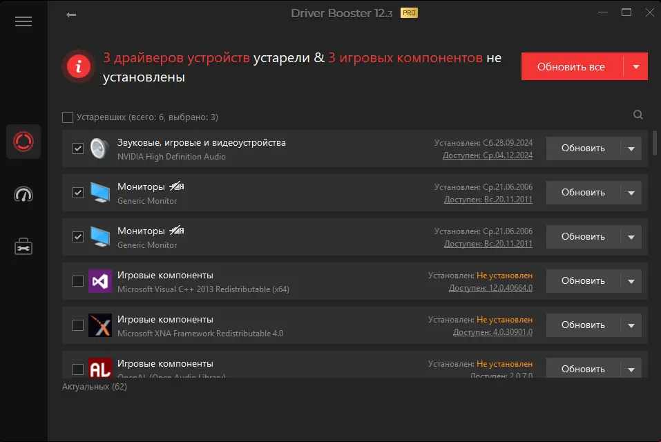 IObit Driver Booster — это инструмент для автоматического поиска и установки обновлений драйверов, обеспечивающий стабильную работу оборудования и повышение производительности системы, особенно в играх. Программа быстро определяет устаревшие компоненты и позволяет обновить их в один клик, минимизируя риски сбоев и конфликтов.