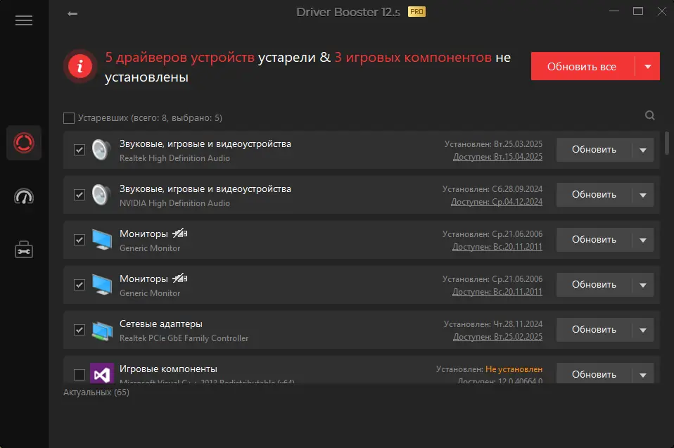 Работа с IObit Driver Booster