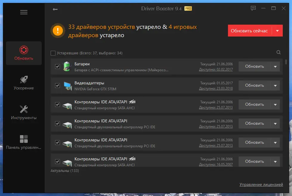 - Автоматически сканирует систему на наличие устаревших драйверов.