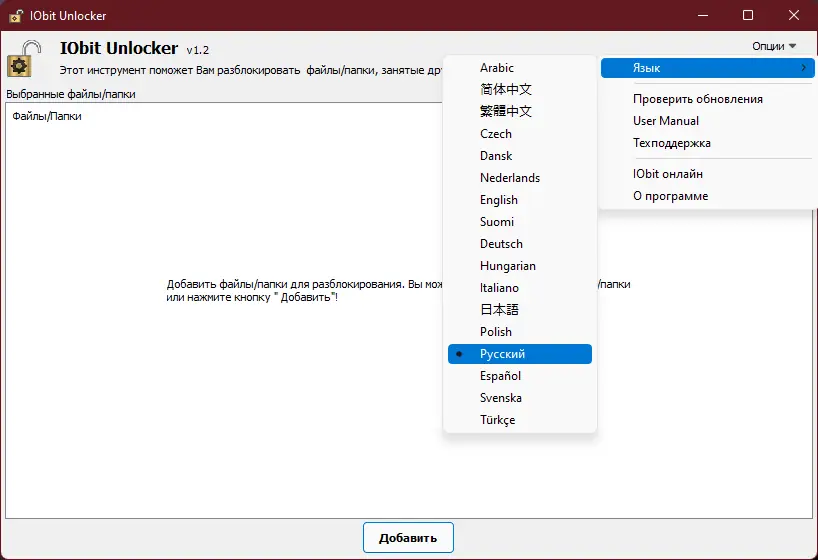 Работа с IObit Unlocker