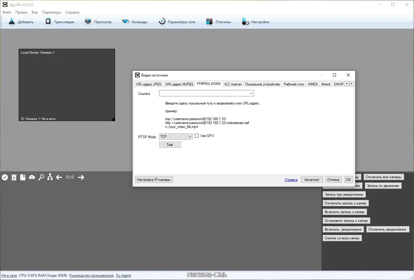 - Поддержка множества камер и микрофонов одновременно, включая ip-устройства.