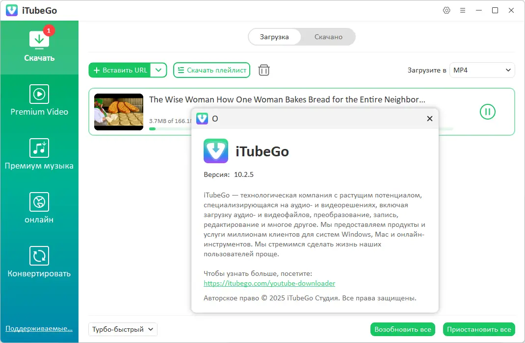 iTubeGo YouTube Downloader — это универсальное приложение для быстрого скачивания видео и аудио с YouTube и более чем 10 000 других сайтов. Поддерживает форматы Full HD, 4K, 8K и аудио 320 кбит/с в MP3, MP4 и других форматах. Программа предлагает встроенный браузер, пакетную загрузку и конвертацию без потери качества.