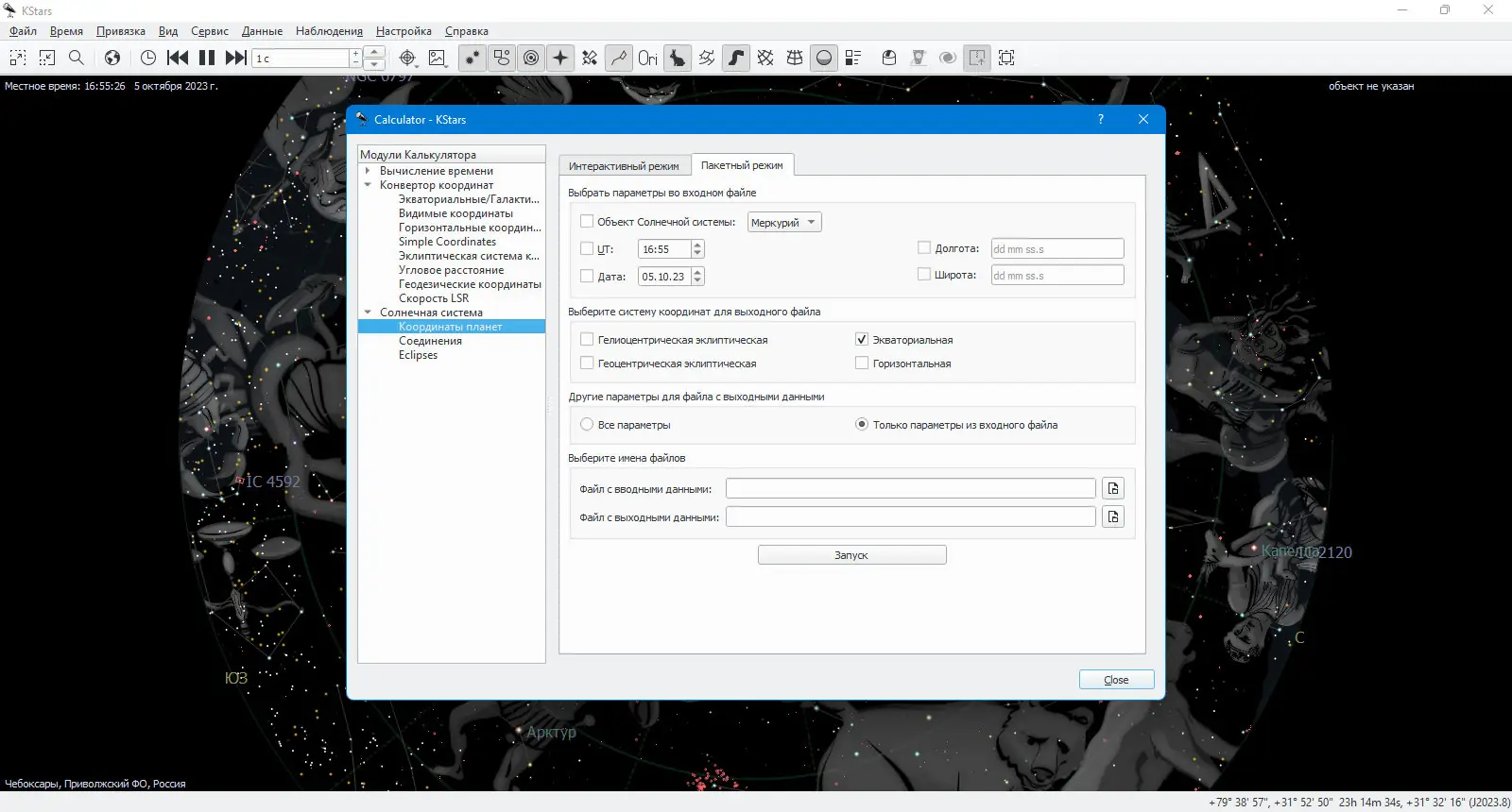 - Поддержка точных координатных систем — экваториальных и горизонтальных — с возможностью преобразования через встроенный астроскалькулятор.