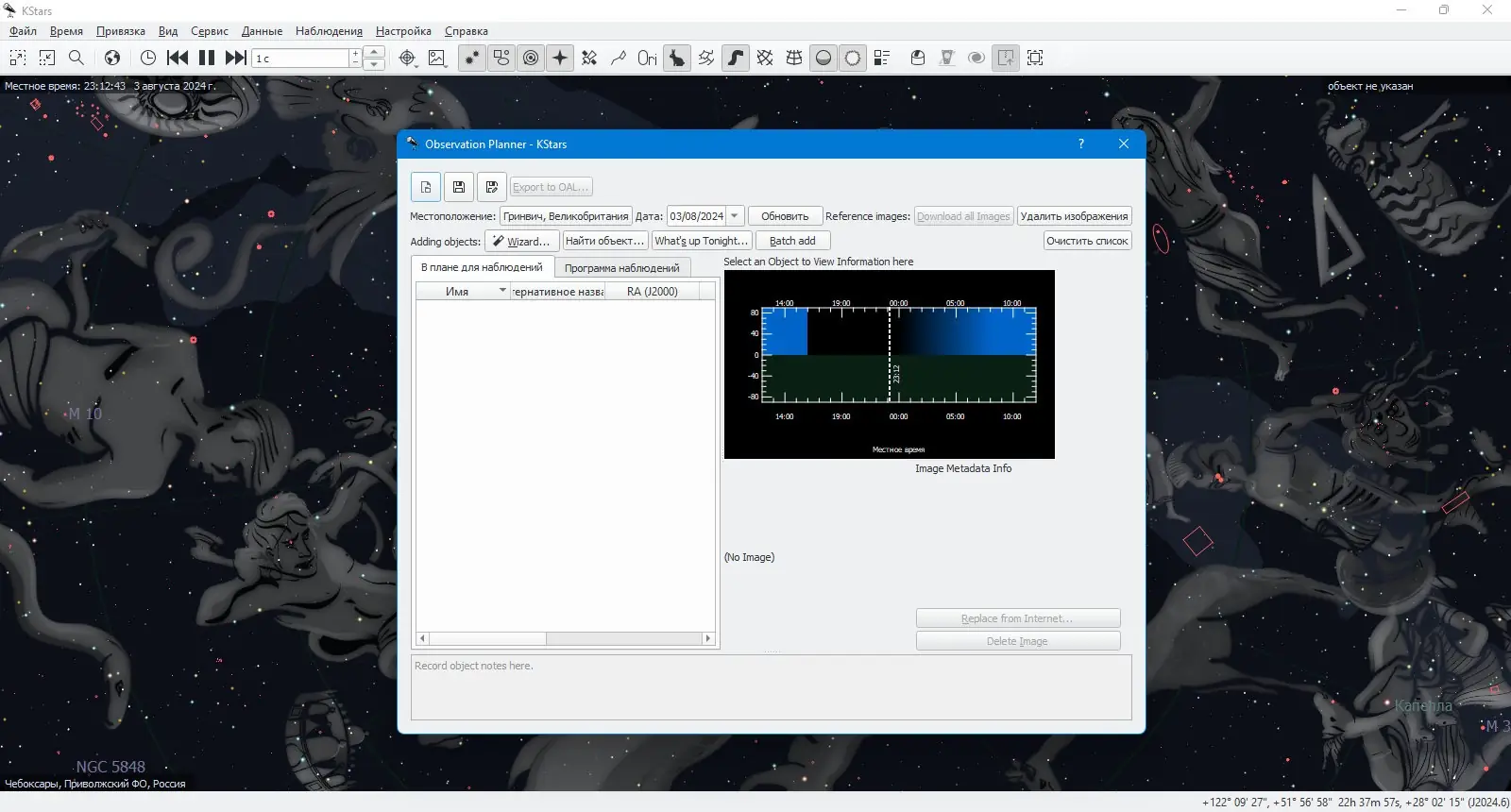 KStars представляет собой мощный инструмент для визуализации звёздного неба, разработанный в рамках проекта KDE. Программа обеспечивает детализированную симуляцию небесной сферы, включая до 100 миллионов звёзд и более 13 000 объектов глубокого космоса. Она поддерживает точные астрономические расчёты, включая прецессию, нутацию и атмосферную рефракцию, что делает её незаменимой как для студентов, так и для профессионалов. С помощью KStars можно наблюдать за движением планет, анализировать траектории астероидов и комет, а также планировать сеансы наблюдений.