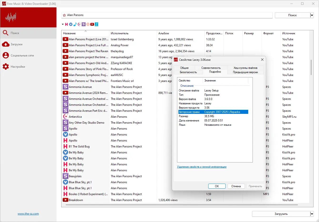 Lacey — это универсальный инструмент для поиска и загрузки аудио и видео с популярных интернет-платформ. Программа позволяет быстро находить нужный контент и сохранять его на устройство, даже если сайт не предоставляет прямой функции скачивания. Поддержка множества ресурсов, встроенное воспроизведение и конвертация делают её удобным решением для пользователей, ценящих простоту и функциональность.