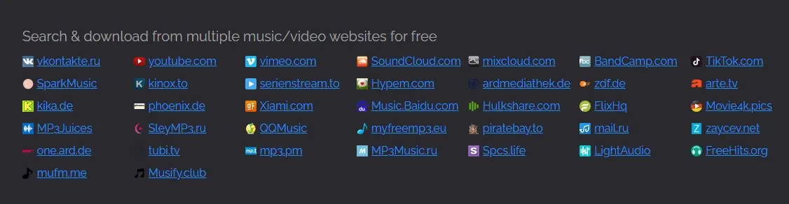 - Осуществляет поиск по десяткам популярных сайтов, включая легальные и нелицензированные ресурсы.