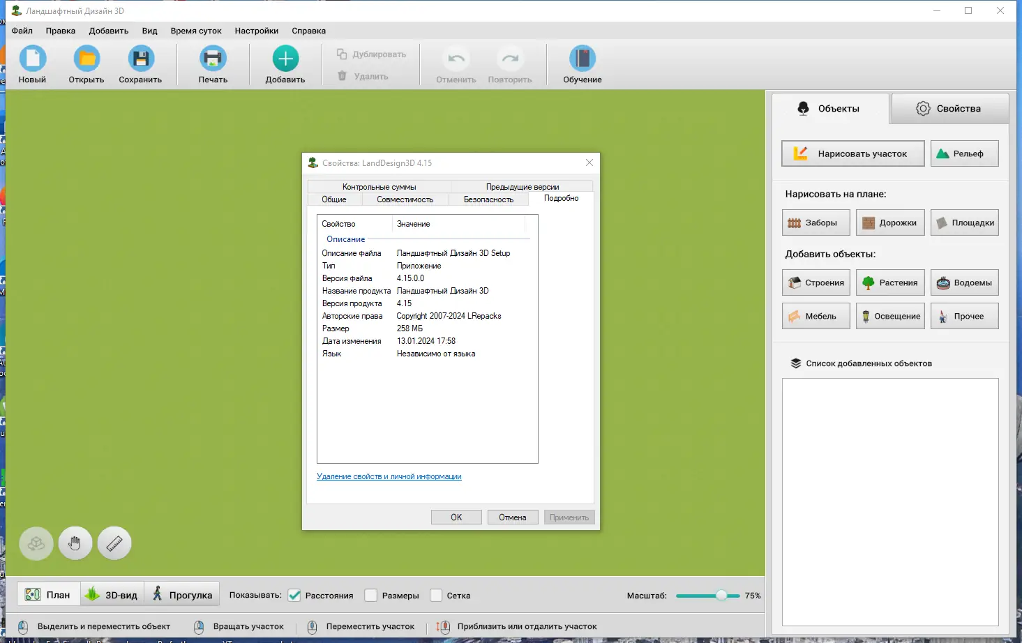 Ландшафтный Дизайн 3D — это удобная программа для проектирования приусадебных участков в трёхмерном формате, позволяющая визуализировать сад, постройки и дорожки с высокой точностью. Создание ландшафта становится простым и интуитивным процессом даже для новичков.