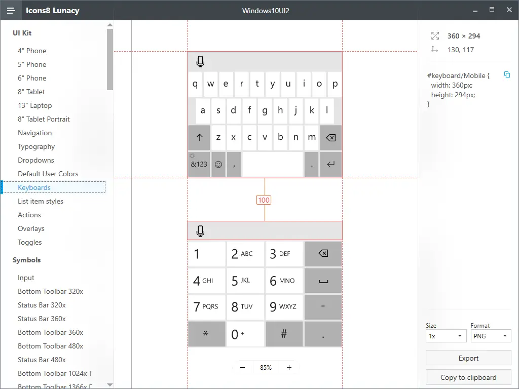 - Экспорт отдельных элементов интерфейса в популярные графические форматы.