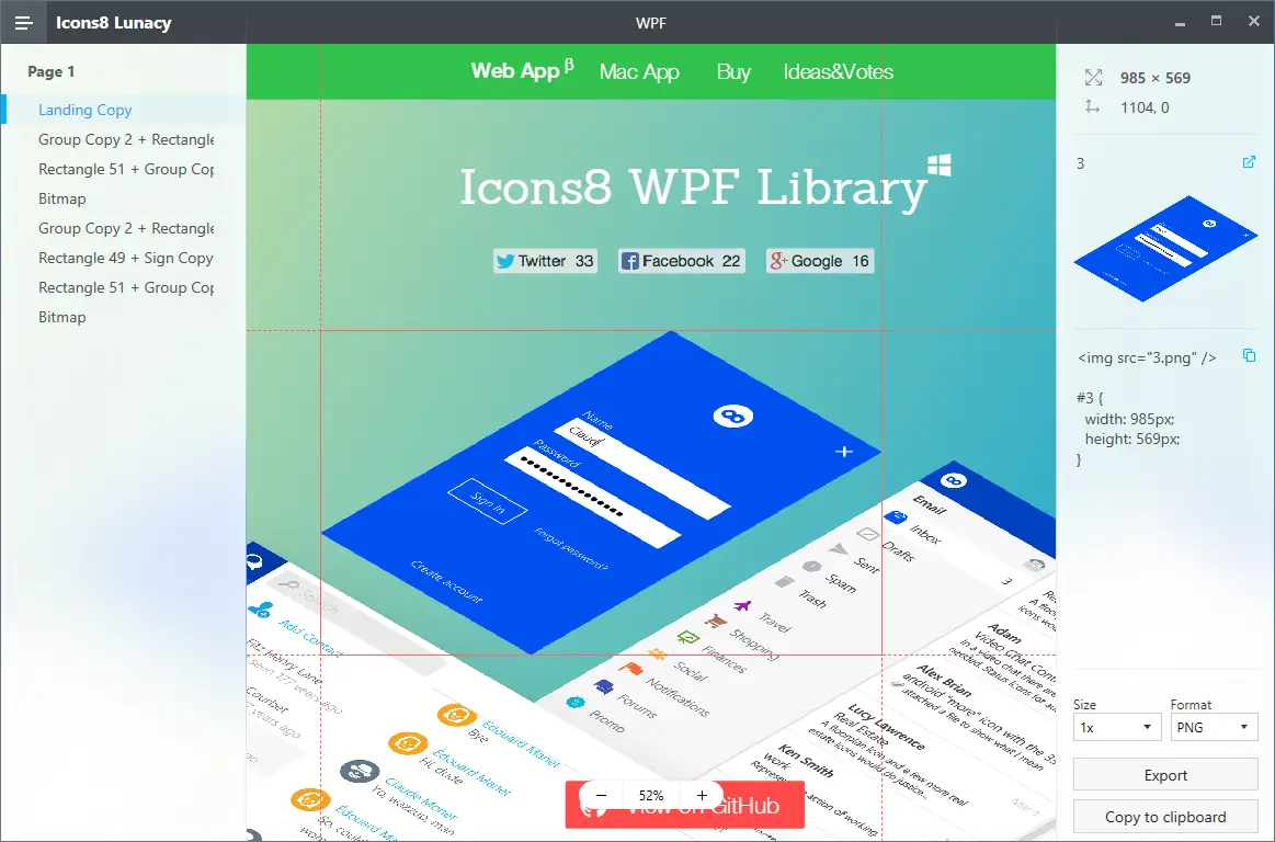 Icons8 Lunacy — это специализированный инструмент, разработанный для удобного просмотра и анализа файлов формата Sketch на платформе Windows. Программа функционирует без необходимости постоянного подключения к сети, что делает её особенно полезной в условиях ограниченного доступа к интернету. Она ориентирована на дизайнеров, которым необходимо работать с макетами, созданными в Sketch, без установки дополнительных ресурсоёмких приложений.