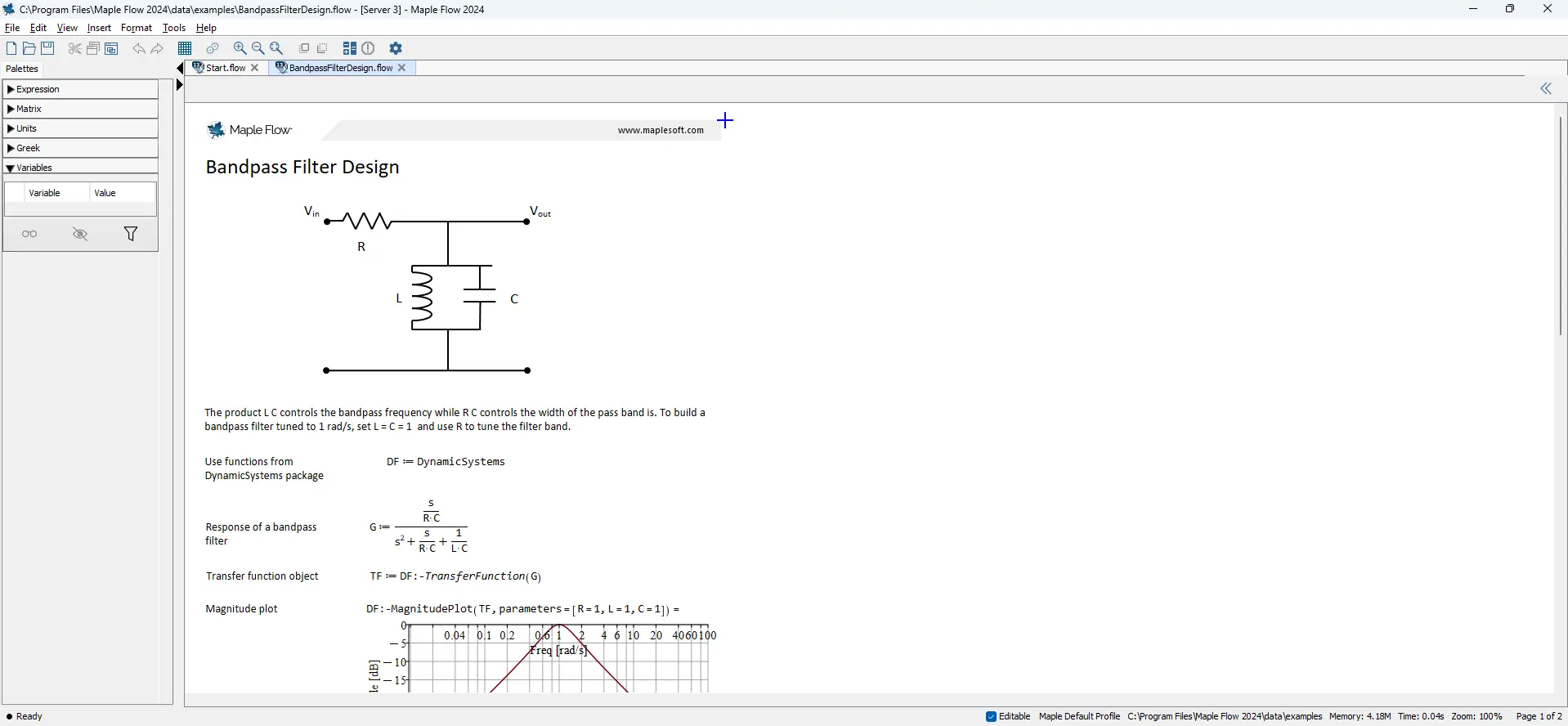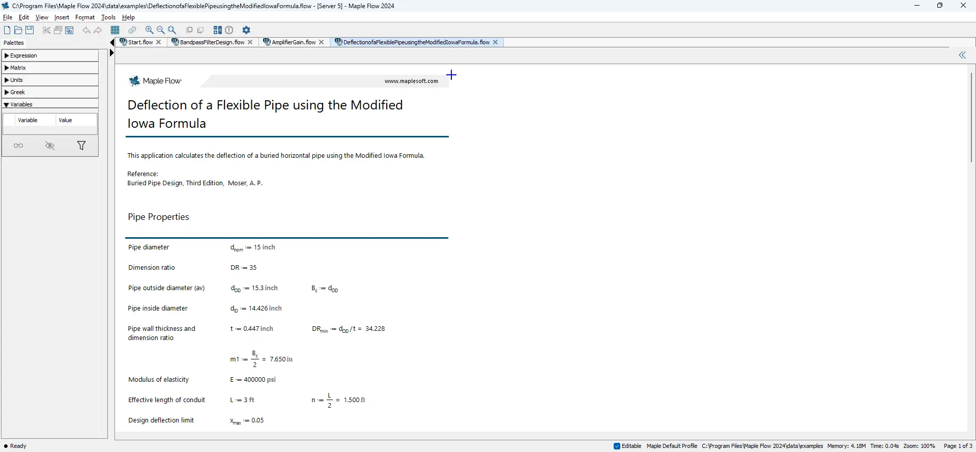 Maplesoft Maple Flow представляет собой инструмент для технических вычислений, ориентированный на инженеров, учёных и преподавателей, которым необходимо быстро и наглядно выполнять расчёты. В отличие от традиционных сред, где формулы вводятся линейно, в Maple Flow все выражения отображаются в естественном математическом виде, как если бы они были записаны от руки. Это позволяет легко отслеживать логику вычислений и вносить изменения в любой части документа без потери целостности.