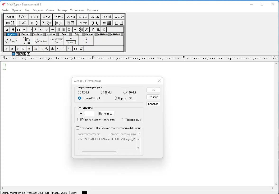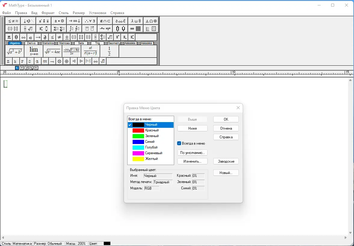 Работа с MathType