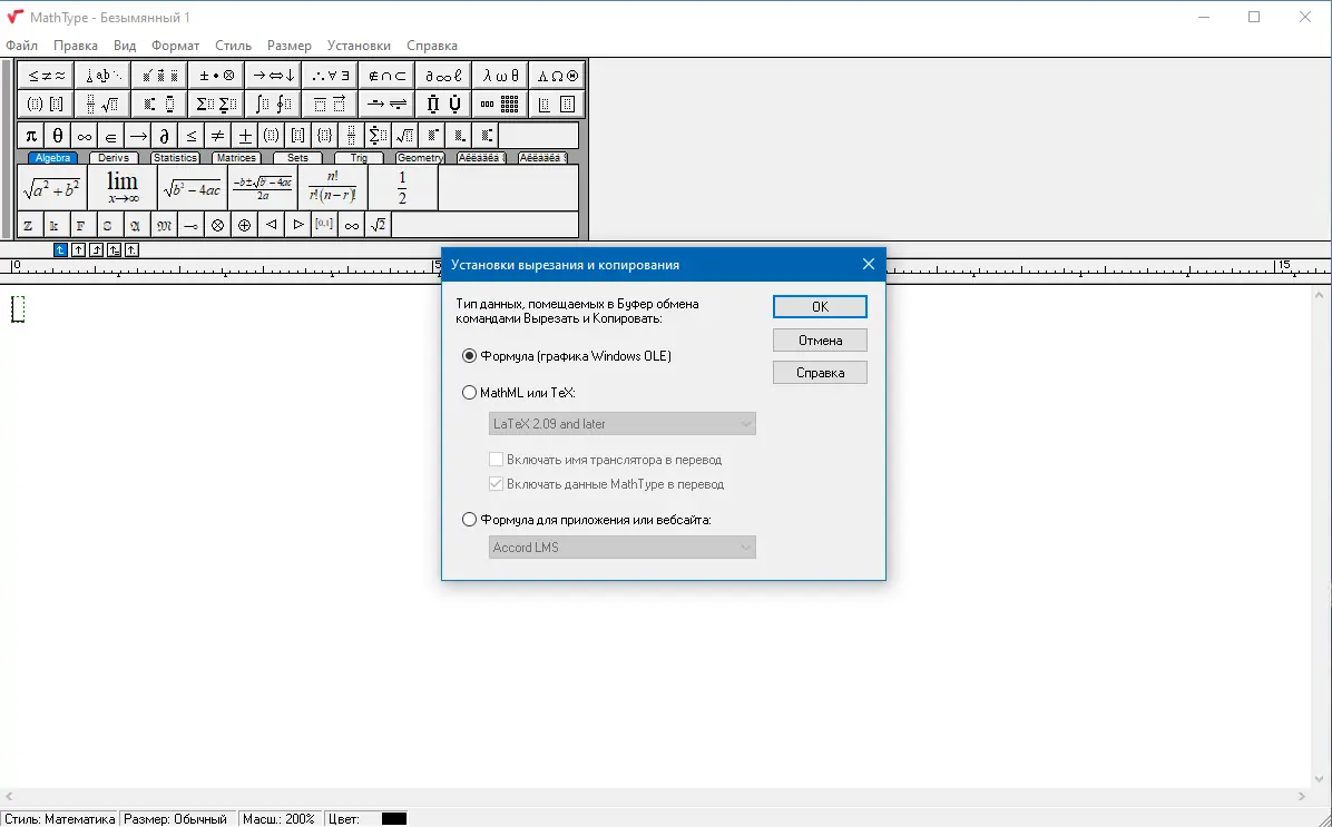 Работа с MathType