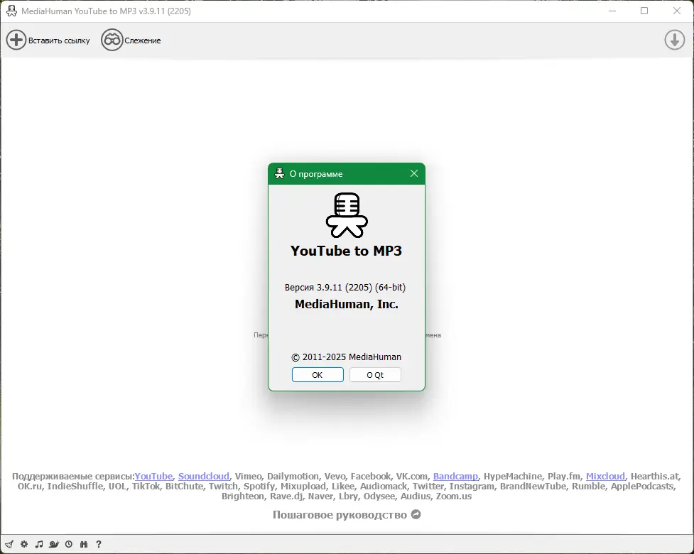 MediaHuman YouTube to MP3 Converter — это удобное приложение для извлечения аудиодорожек из видео на YouTube, Vimeo, SoundCloud и других платформах. Программа быстро конвертирует ролики в формат MP3, сохраняя высокое качество звука, и поддерживает загрузку целых плейлистов и каналов. Подходит для тех, кто хочет слушать любимую музыку, подкасты или аудиокниги без подключения к интернету.