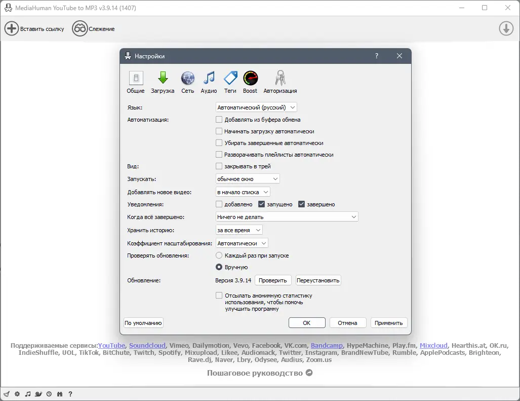 Работа с MediaHuman YouTube to MP3 Converter