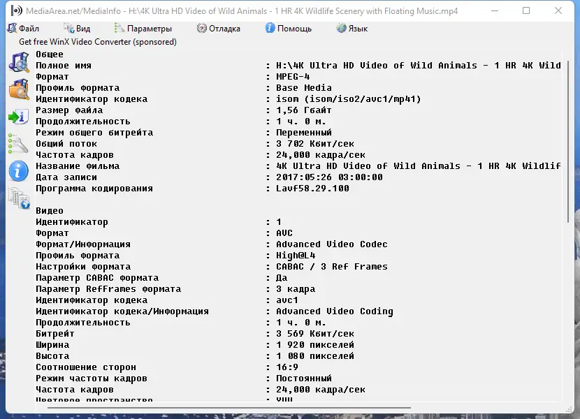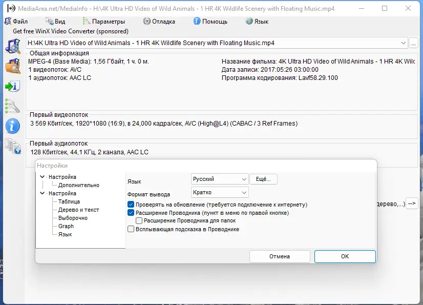 Работа с MediaInfo