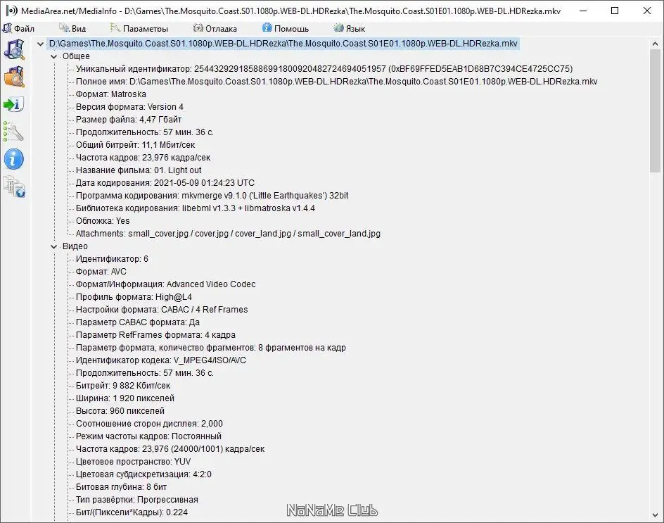 MediaInfo предоставляет доступ к полной технической спецификации медиафайлов, включая параметры видеопотока, аудиодорожек, субтитров и служебной информации. Программа определяет используемый кодек, разрешение, битрейт, частоту кадров, аспект-соотношение, языки звука и многое другое. Это делает её незаменимым помощником при работе с архивами, конвертацией или диагностике проблем с воспроизведением.