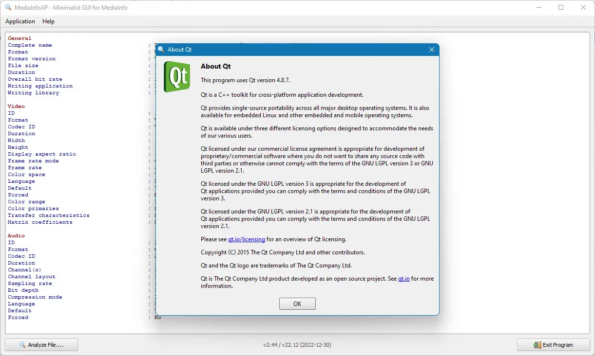 MediaInfoXP представляет собой минималистичный графический интерфейс, разработанный с нуля LoRd_MuldeR на основе функционала MediaInfo. Утилита ориентирована на пользователей, которым требуется быстрый и точный доступ к метаданным мультимедийных файлов без необходимости запуска сложных приложений. Она поддерживает широкий спектр форматов, включая AVI, MKV, MP4, MOV, WMV, MP3, FLAC, AAC и многие другие. Благодаря компактности и простоте, программа идеально подходит как для новичков, так и для специалистов, работающих с медиаконтентом. Проект распространяется под лицензиями GPL и LGPL, что гарантирует свободу использования и модификации исходного кода.