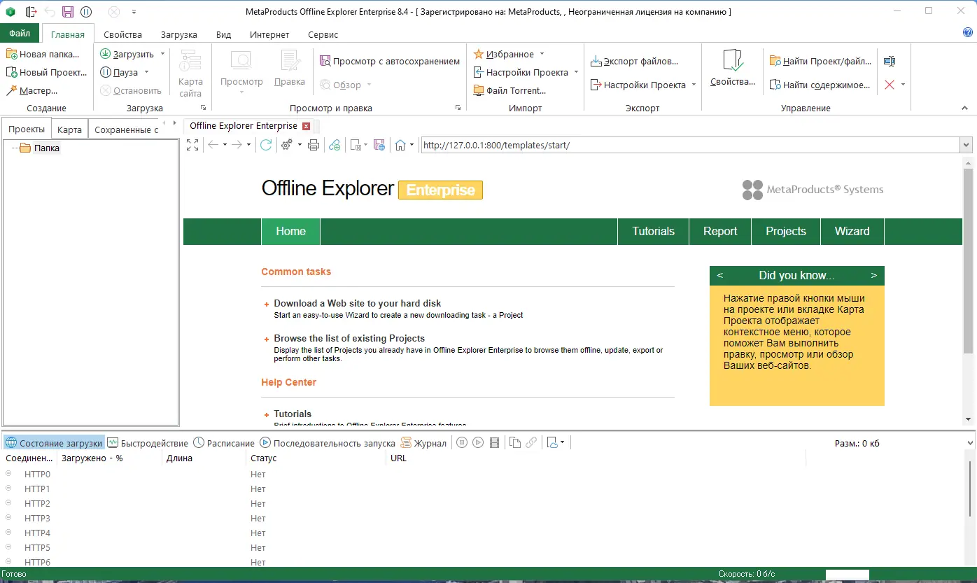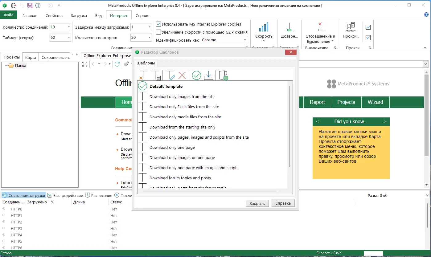 MetaProducts Offline Explorer — программа для загрузки веб-сайтов и отдельных файлов с поддержкой HTTP, FTP, HTTPS и других протоколов, позволяющая просматреть контент в автономном режиме. Инструмент подходит как для личного использования, так и для корпоративных задач, обеспечивая высокую скорость, точность и гибкость при работе с интернет-ресурсами. Решение особенно актуально при необходимости анализа, архивирования или офлайн-доступа к большим объёмам веб-данных.