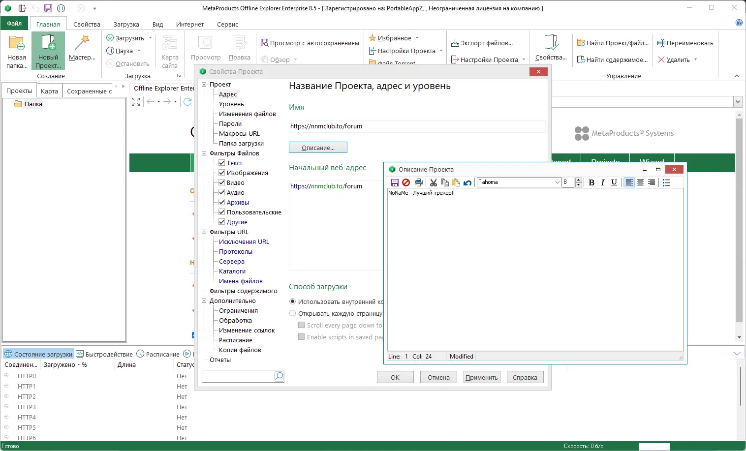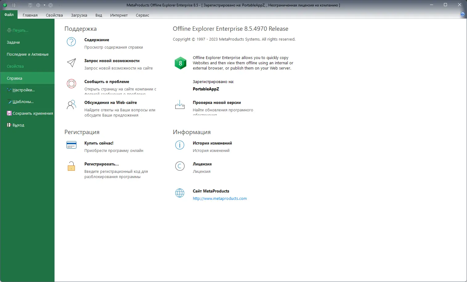 MetaProducts Offline Explorer — это приложение для архивирования и офлайн-просмотра веб-страниц, веб-сайтов и онлайн-ресурсов. Оно поддерживает широкий спектр протоколов, включая HTTP, HTTPS, FTP, а также MMS, RTSP и BitTorrent, что делает его универсальным инструментом для сбора информации из интернета. Программа позволяет сохранять структуру сайтов с полной работоспособностью ссылок, изображений и скриптов. Встроенный браузер обеспечивает удобный просмотр закачанного контента без подключения к сети. Архитектура приложения оптимизирована для обработки больших объёмов данных, включая проекты с миллионами URL.