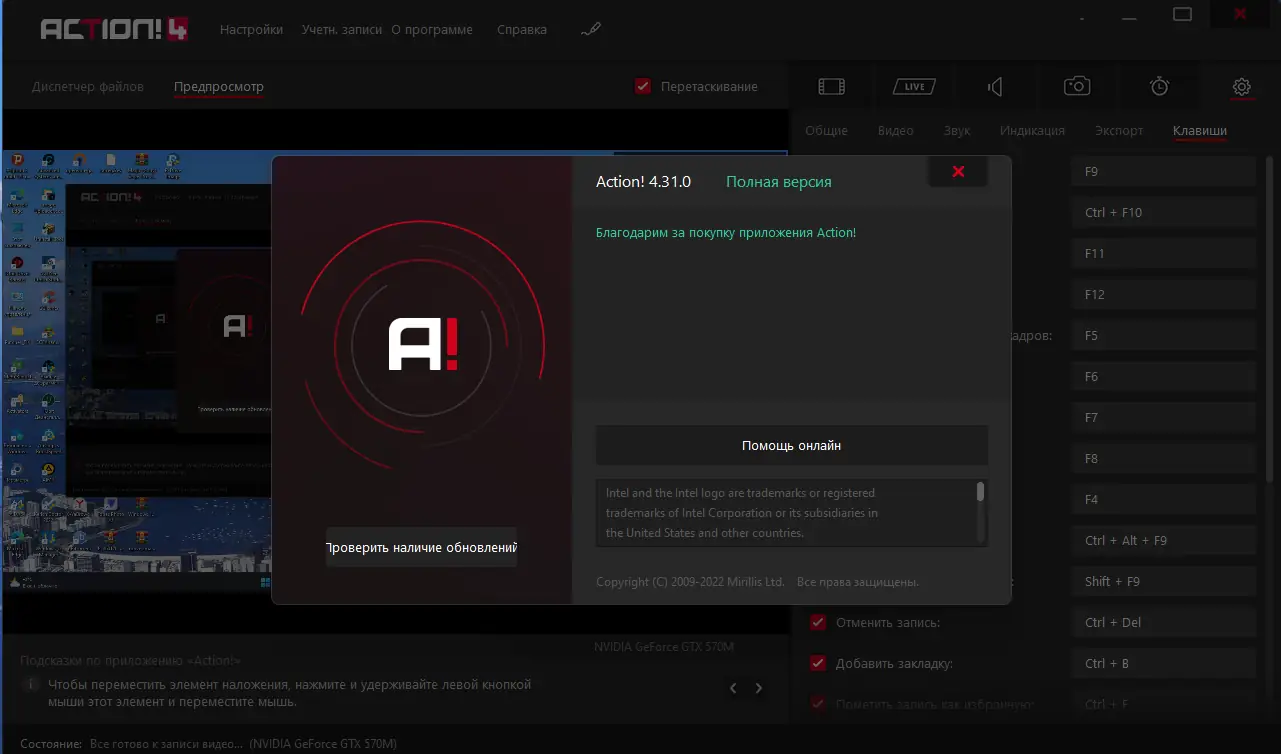 Работа с Mirillis Action