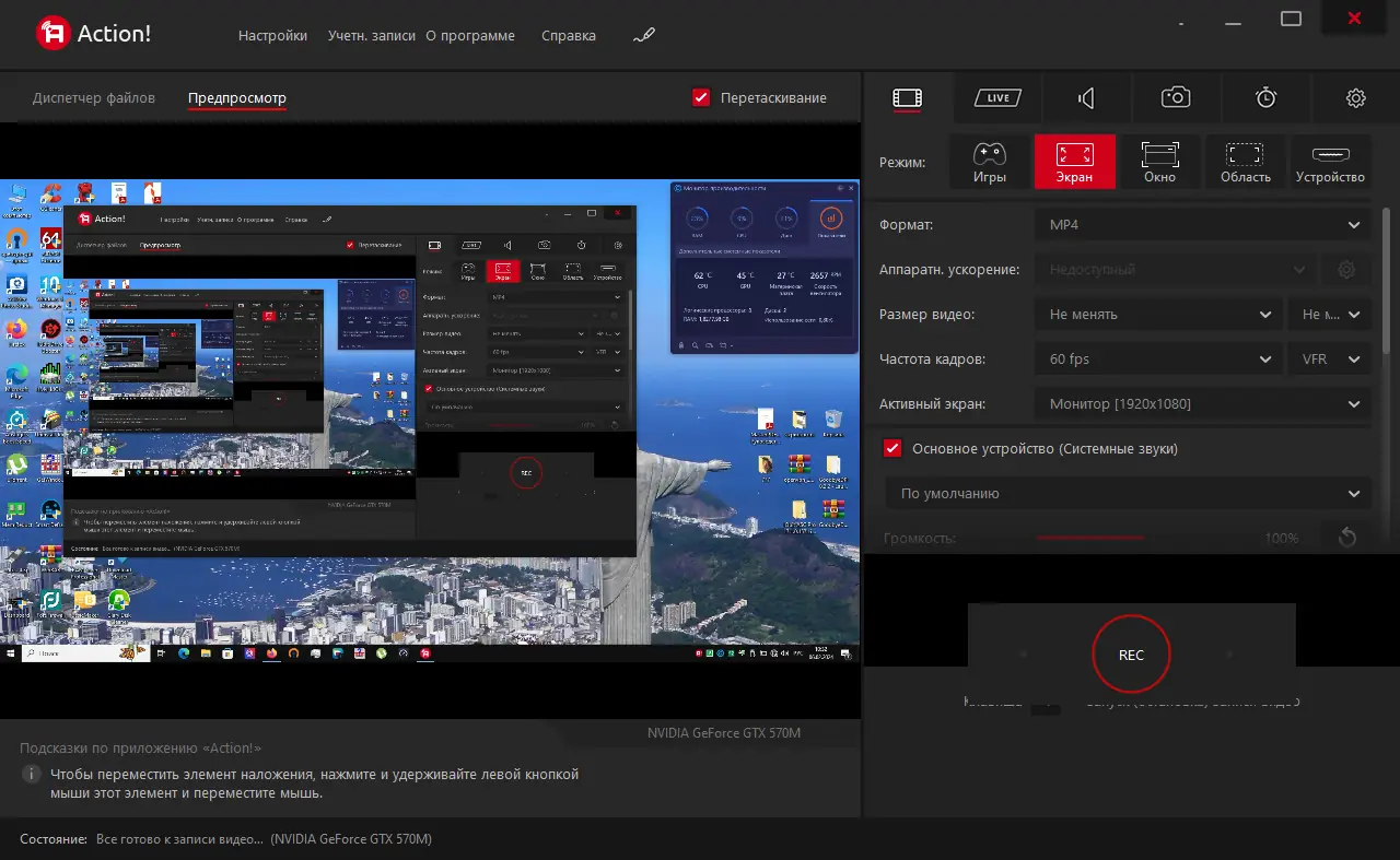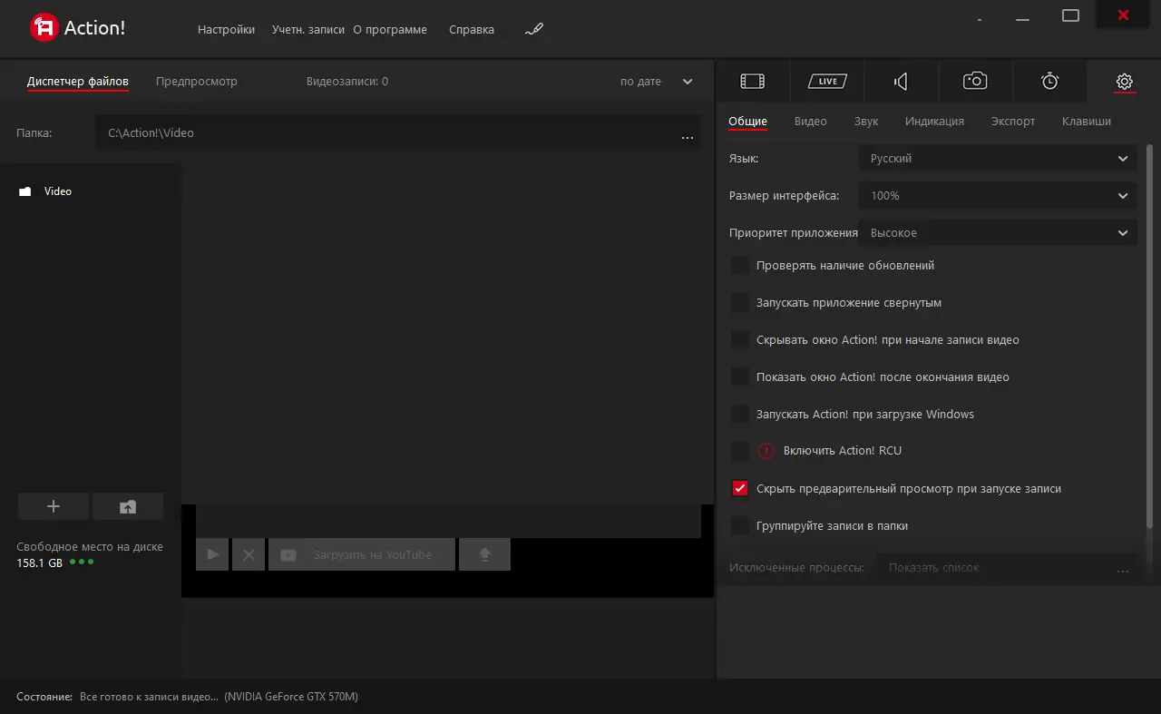 Работа с Mirillis Action!