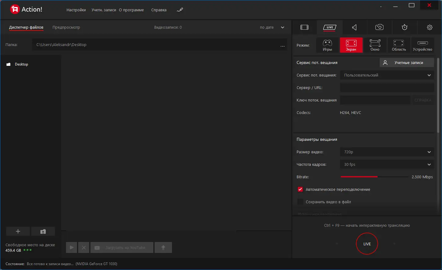 - Возможность прямой трансляции на Twitch, YouTube, Ustream и другие популярные платформы.