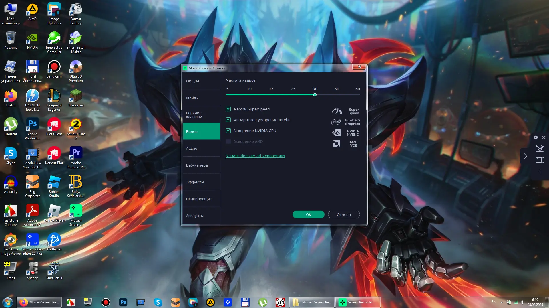 - Возможность записи системного звука и голоса с микрофона одновременно