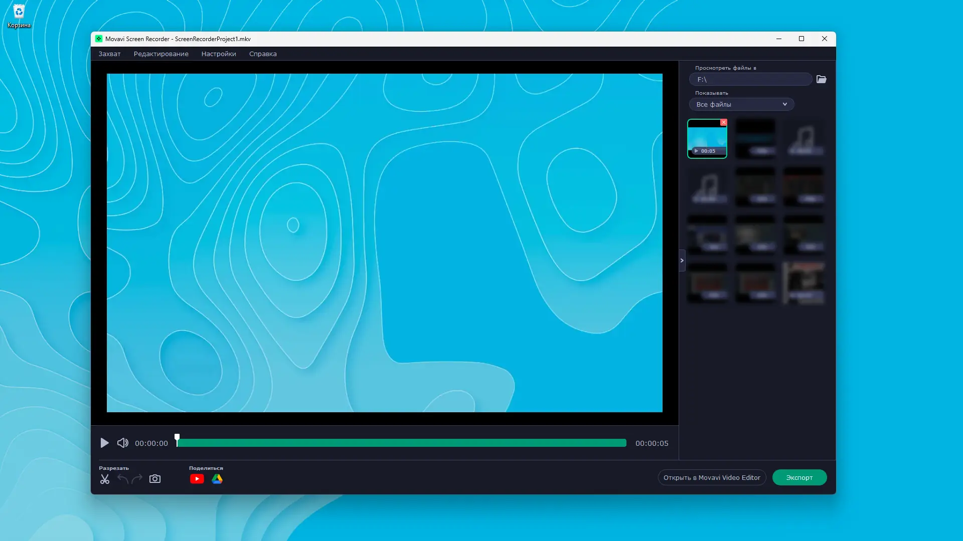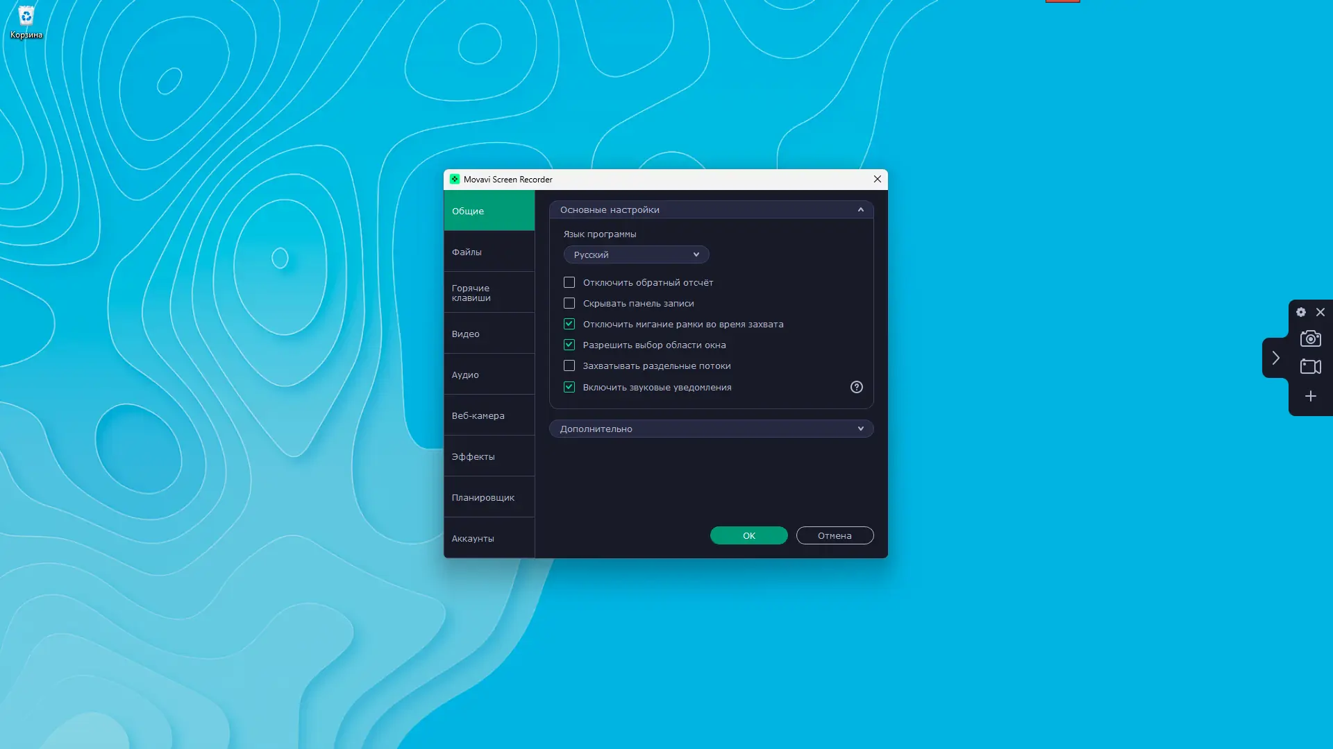 Работа с Movavi Screen Recorder
