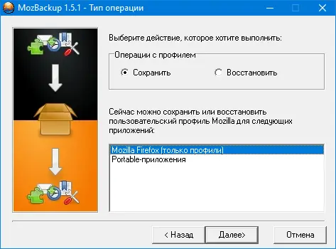 MozBackup — это специализированная утилита для создания резервных копий профилей приложений на базе Mozilla, включая Firefox, Thunderbird, SeaMonkey и другие. Программа позволяет сохранять закладки, настройки, пароли, почтовые базы и адресные книги. Процесс резервного копирования и восстановления данных прост и не требует глубоких технических знаний.