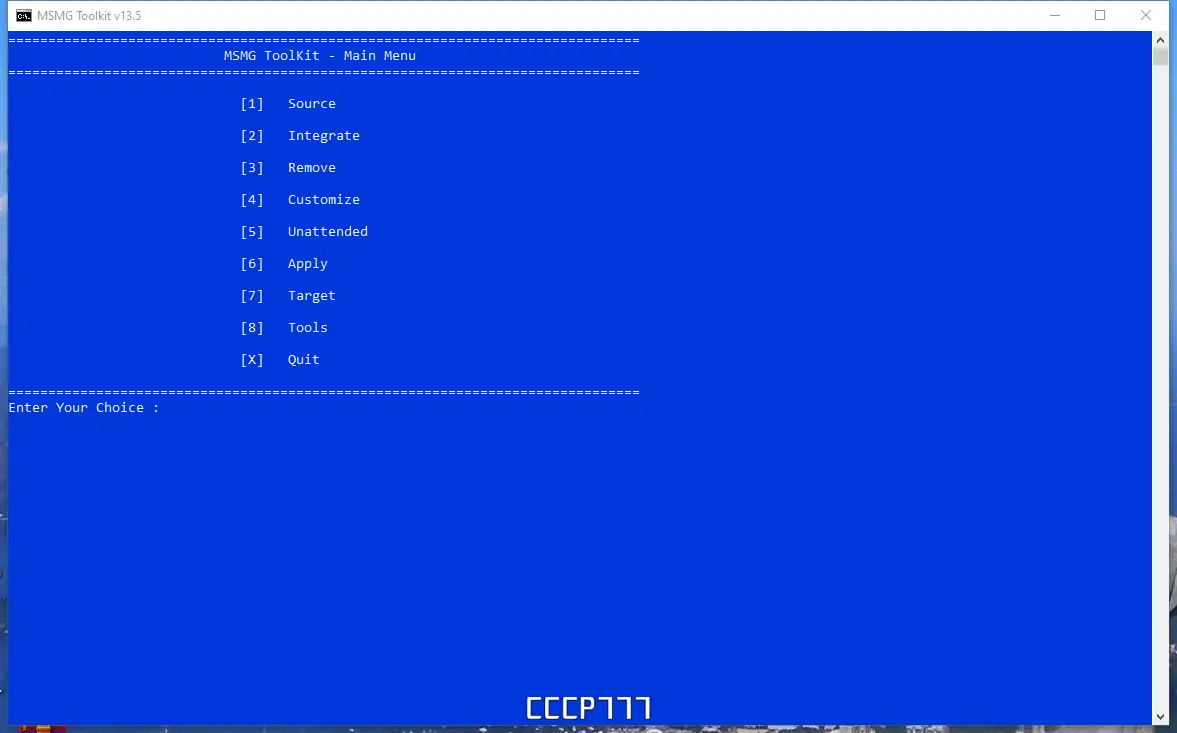 MSMG ToolKit представляет собой комплексный инструмент для модификации исходных файлов установки Windows. Он позволяет тонко настраивать систему на уровне компонентов, удаляя избыточные функции и добавляя необходимые элементы ещё до установки. Утилита работает исключительно через интерфейс командной строки, однако не требует глубоких знаний DOS — управление осуществляется с помощью простых клавишных команд, что делает процесс интуитивно понятным.