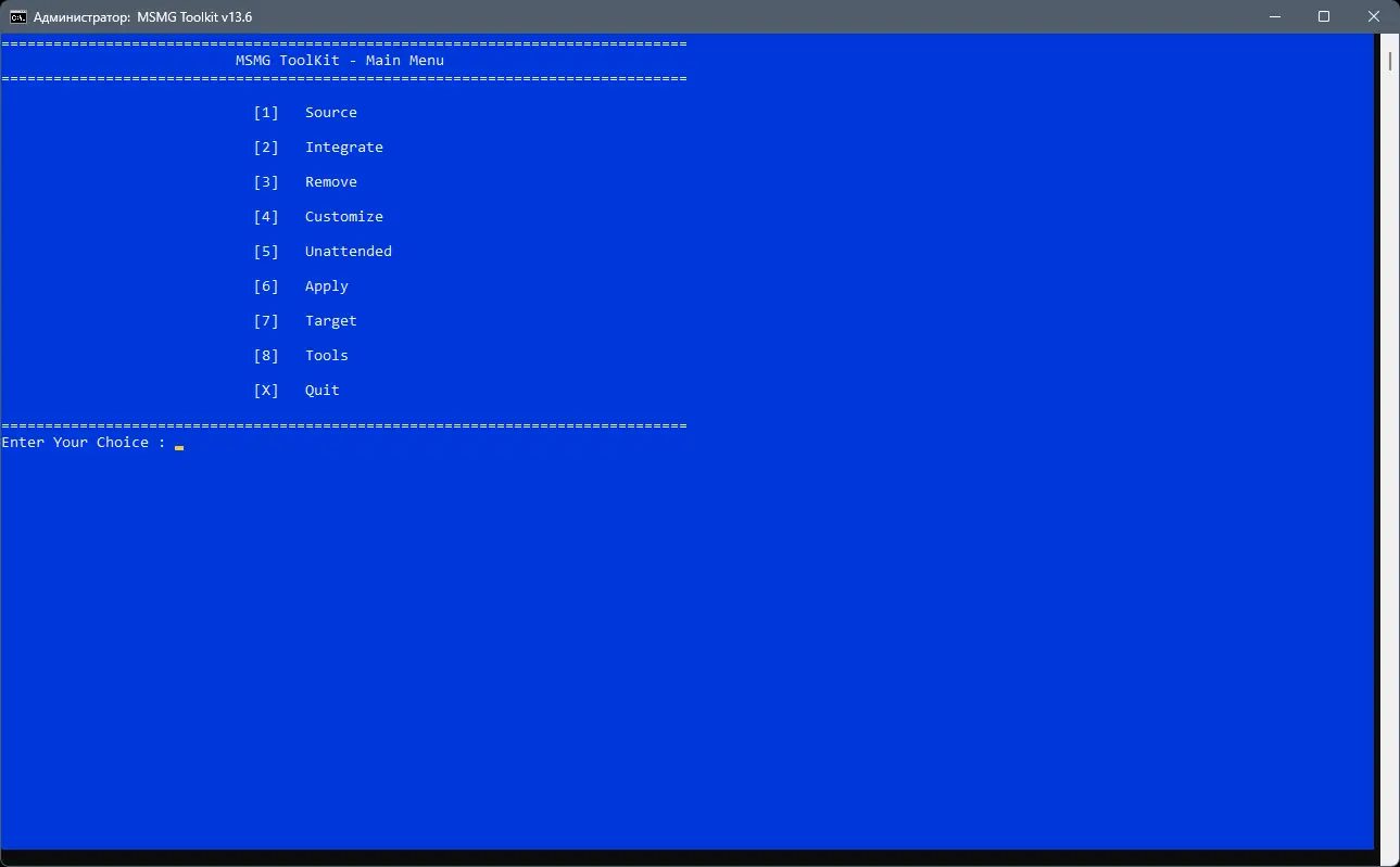 MSMG ToolKit — это мощный инструмент для модификации образов операционной системы Windows, позволяющий удалять ненужные компоненты, интегрировать обновления, драйверы и дополнительные функции, создавая при этом полностью персонализированную и оптимизированную сборку. Программа ориентирована на продвинутых пользователей, желающих получить контроль над составом системы.