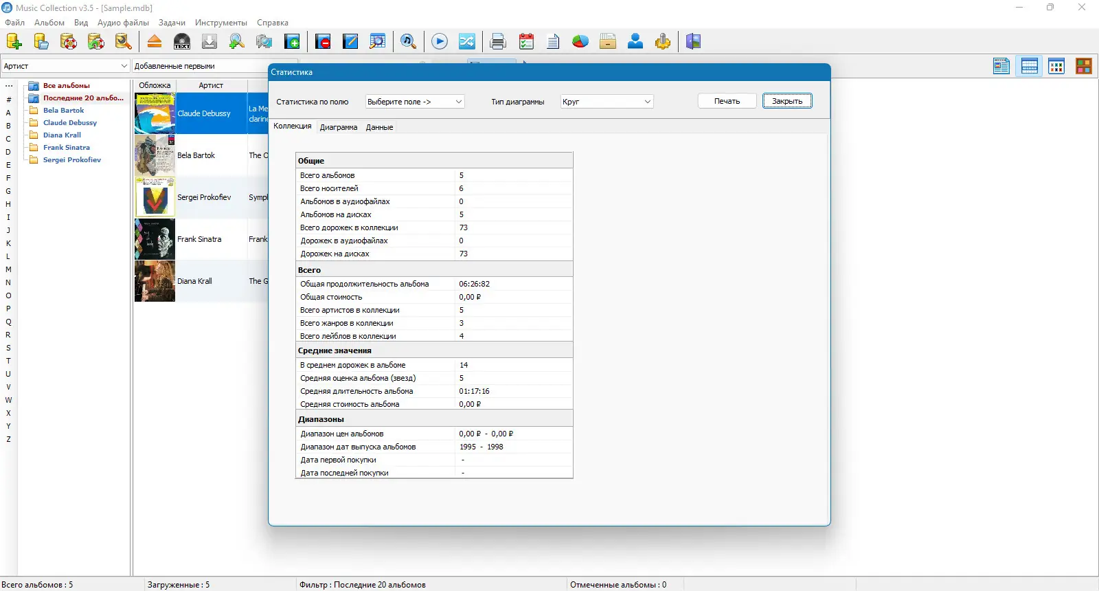 Music Collection — это удобное приложение, ориентированное на тех, кто стремится привести свою музыкальную библиотеку в полный порядок. Программа позволяет создавать базу данных в формате Microsoft Access, обеспечивая надёжное хранение и быстрый доступ к информации. Поддерживаются все распространённые форматы аудиофайлов, включая mp3, flac, wav, m4a и другие, что делает инструмент универсальным для любого типа коллекции. Каждый альбом может сопровождаться подробной информацией: списком треков, текстами песен, годом выпуска, жанром, а также обложкой, которую можно выбрать вручную или загрузить автоматически.